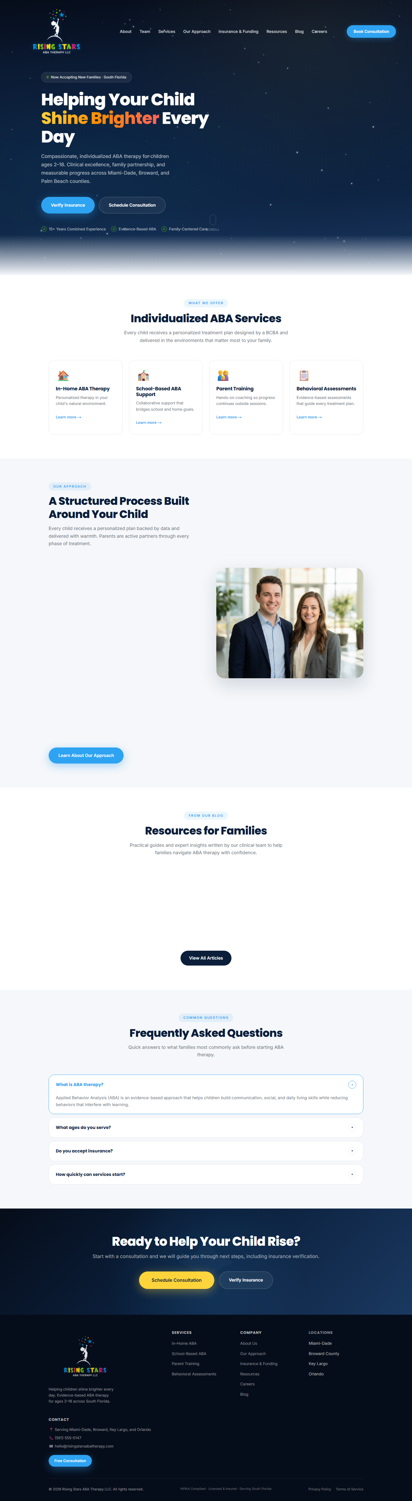 Marketing website for ABA therapy practice with SEO optimization, rich structured data, and appointment booking.